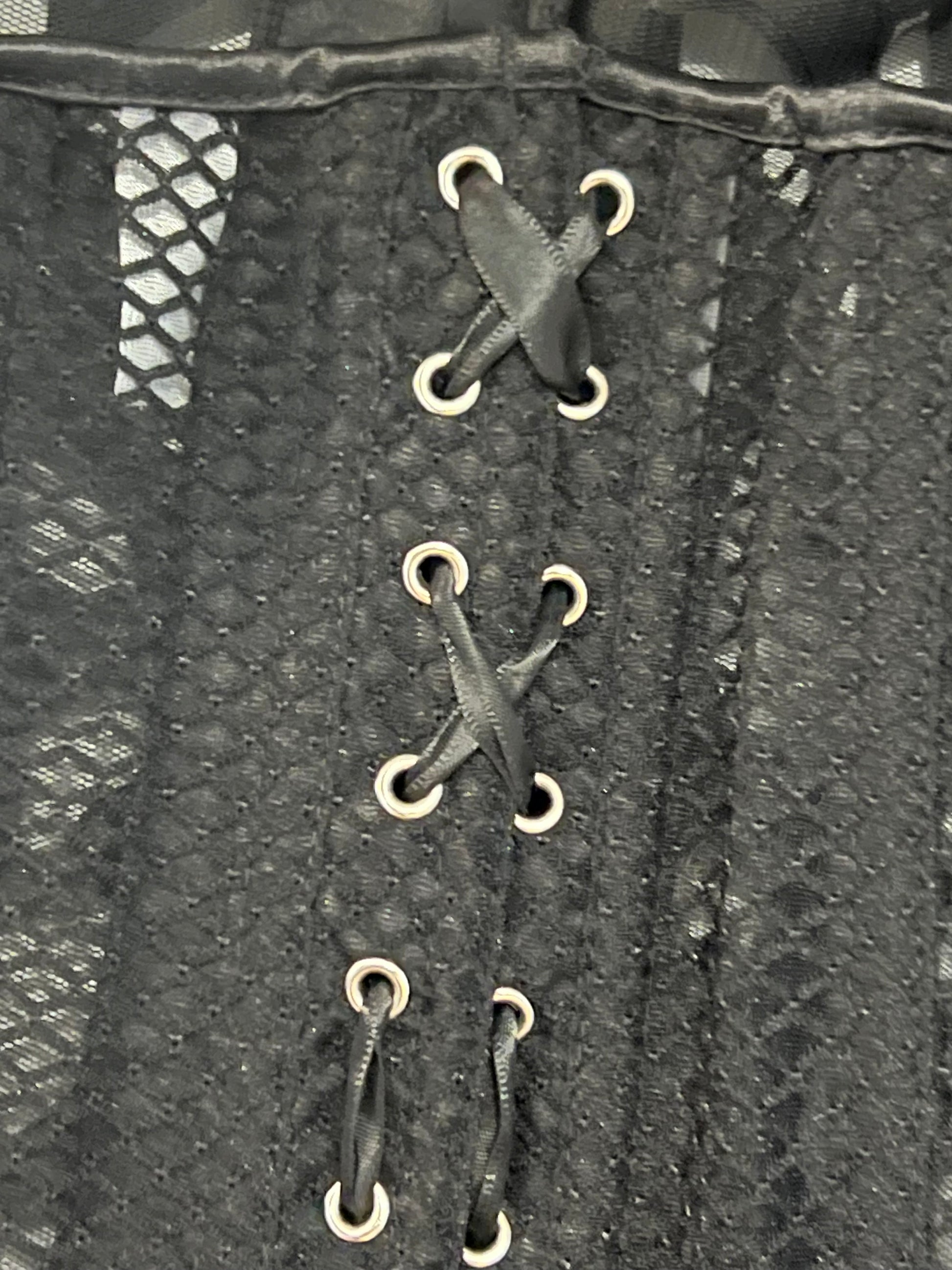 Black mesh and lace corset. Great for layering. Terrific festival wear. L or XL.