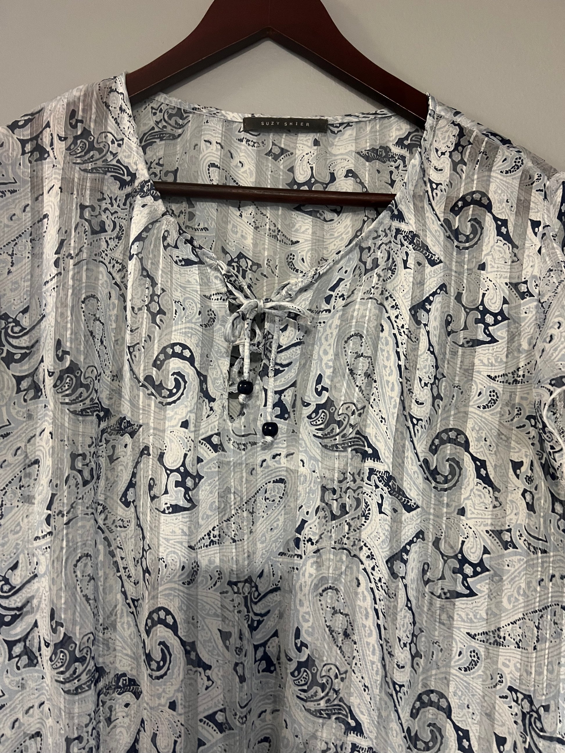 Gorgeous sheer blouse in blue and white.